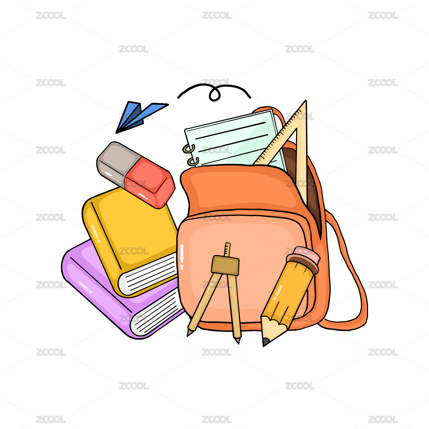 插画,白色背景,书包,文具,书本,铅笔,书,学生,学习用品,文具店