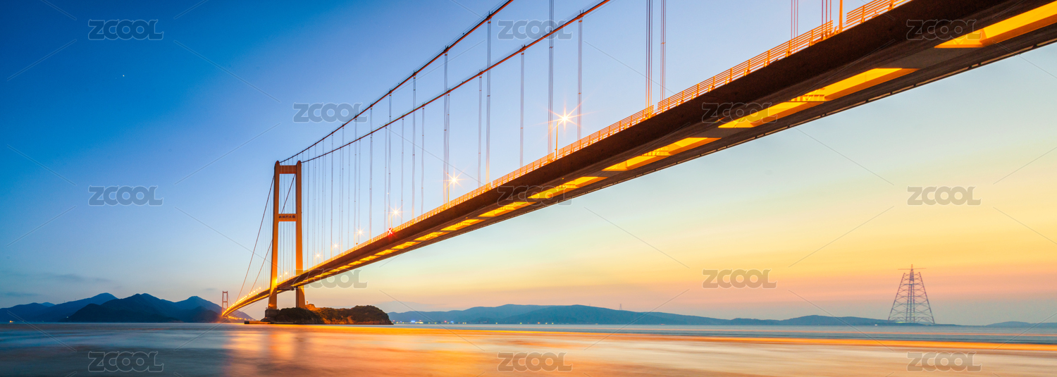 辽宁省大连市星海湾大桥日出前的蓝调时刻,