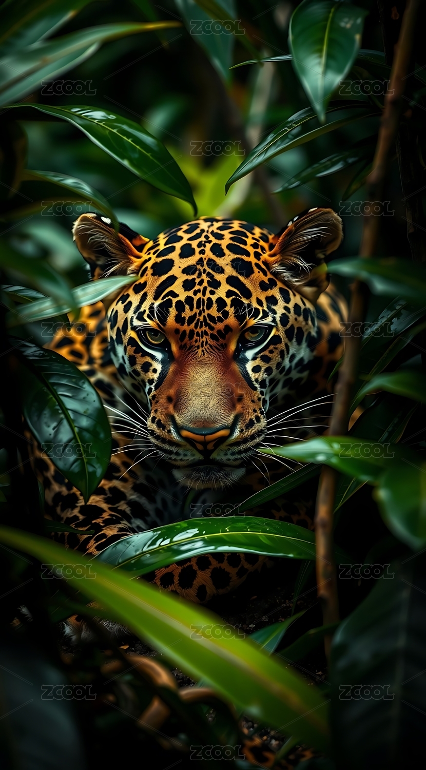 丛林中的豹子凝视