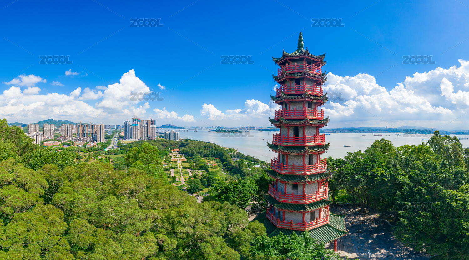 广东省深圳市龙华公园龙峰塔白昼航拍