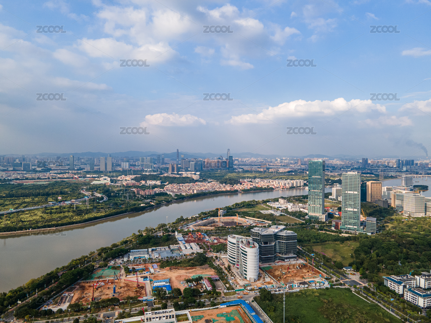 东莞水道特大桥和龙湾湿地乐跑公园风光航拍
