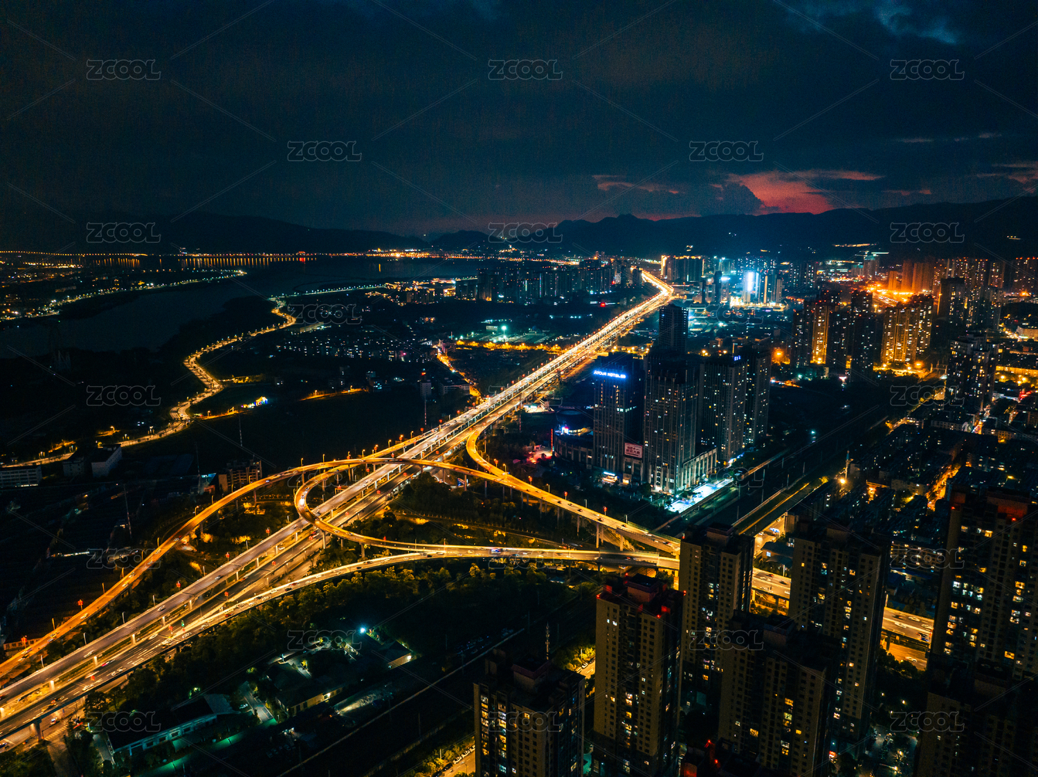 云南昆明西山区明波立交桥夜景城市航拍晚霞