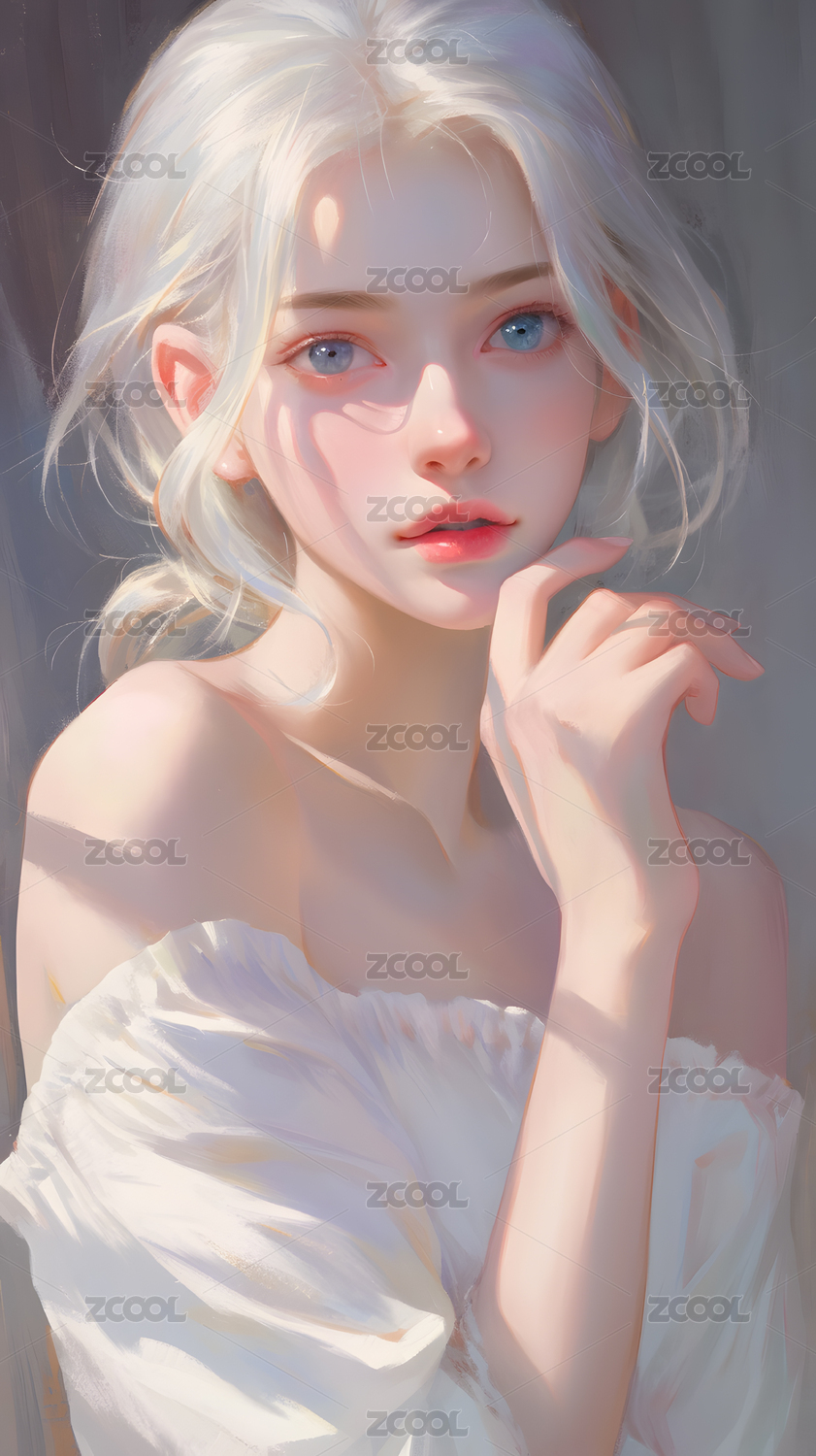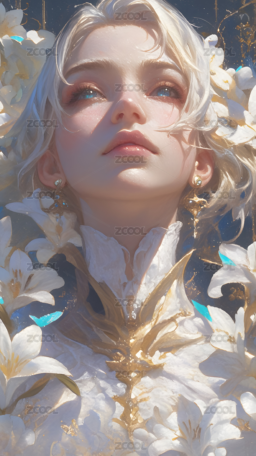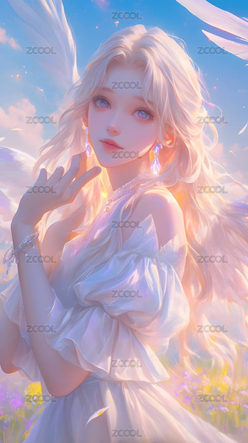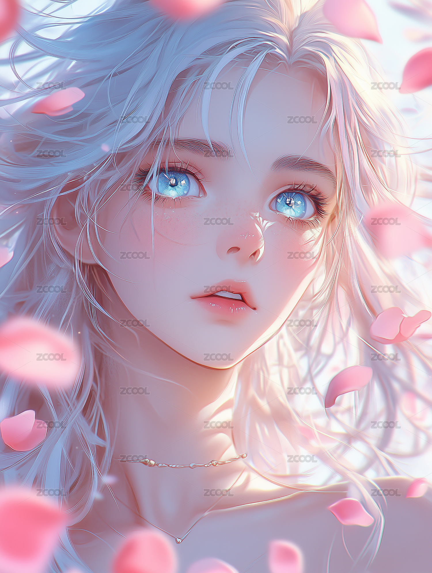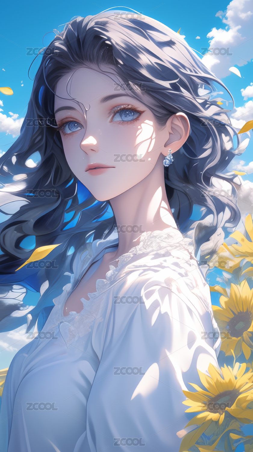 美女,花,治愈系,二次元,动漫,卡通,插画,人,女人,美