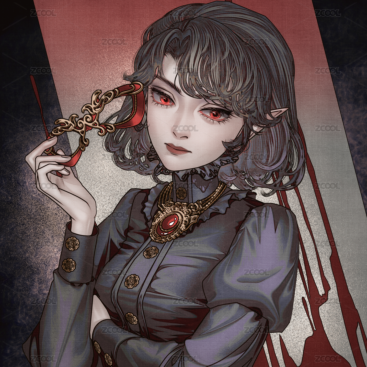 冷淡风黑白盐系少女动漫立绘人物服饰插画