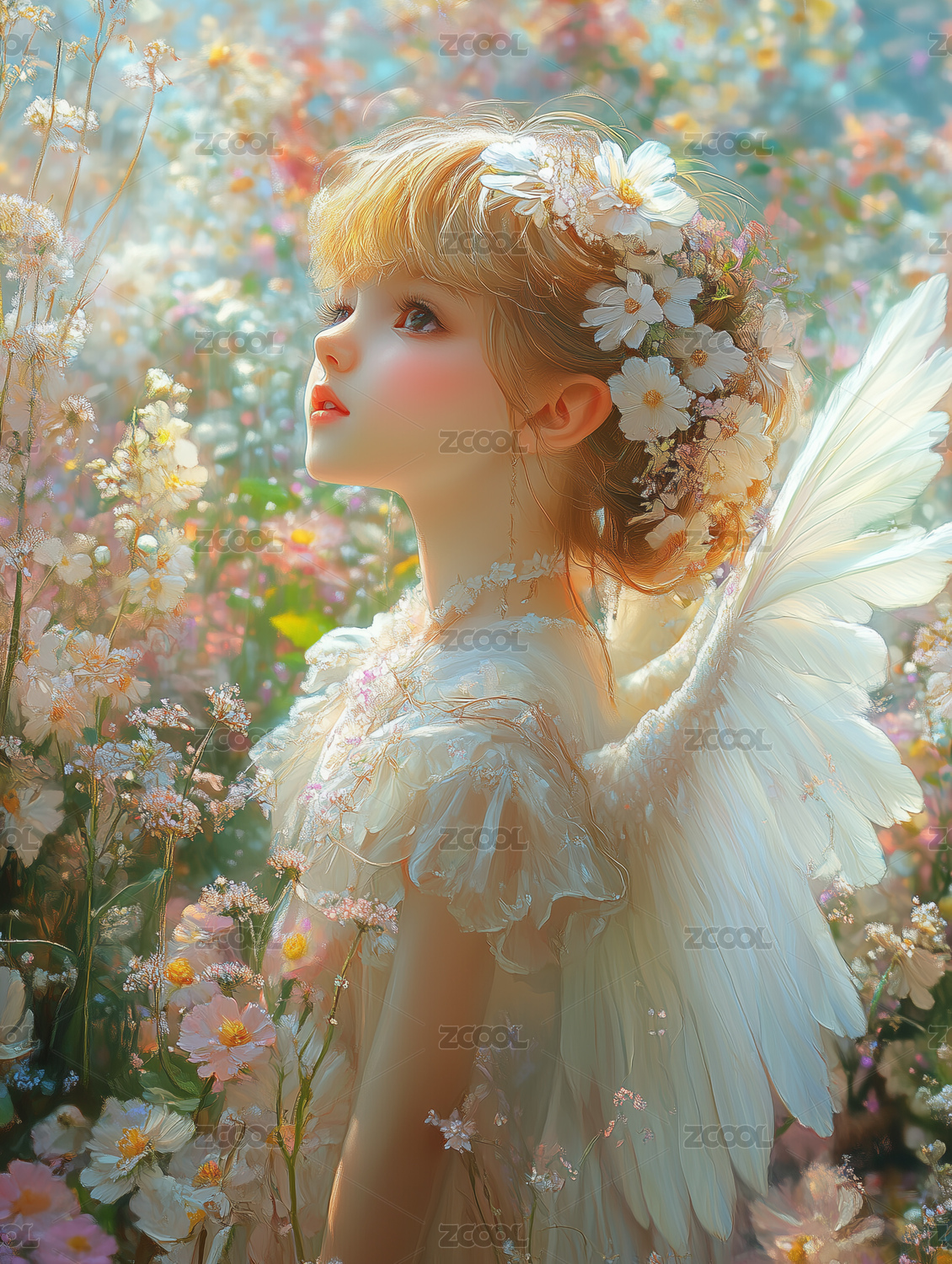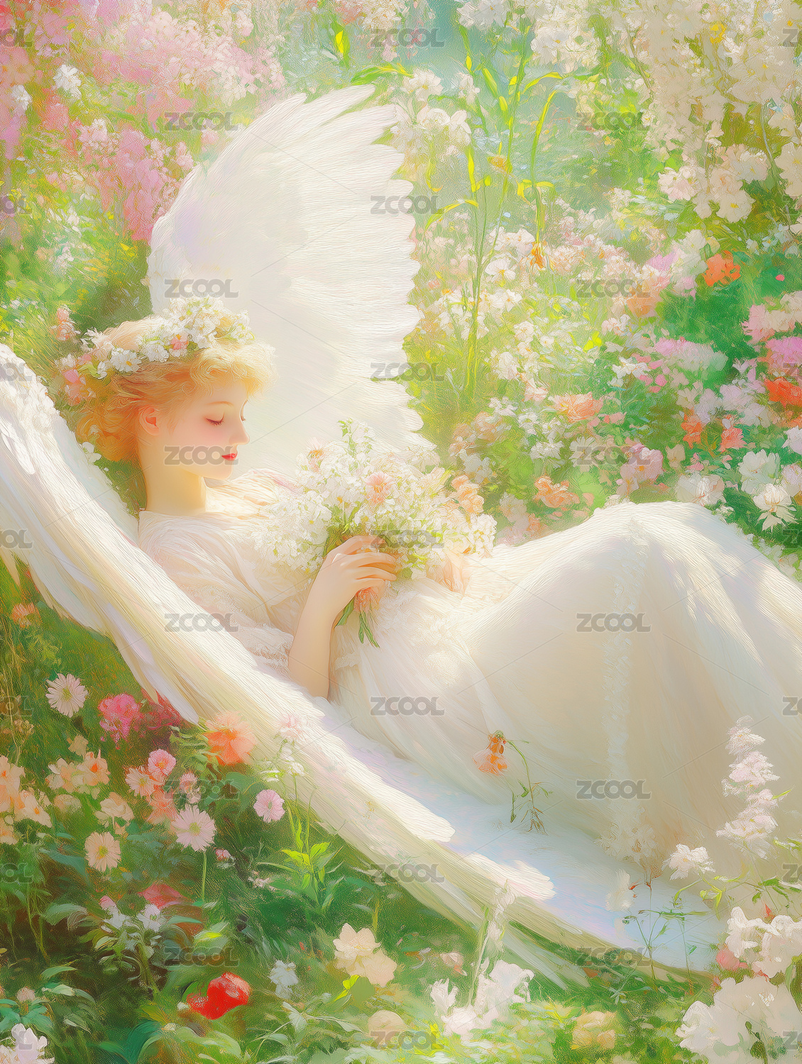 莫奈,天使,十字绣,插画,自然,文艺,睡莲