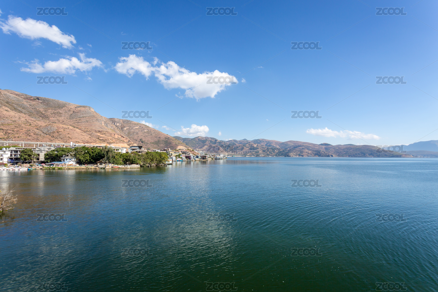 蓝天白云下的大理洱海
