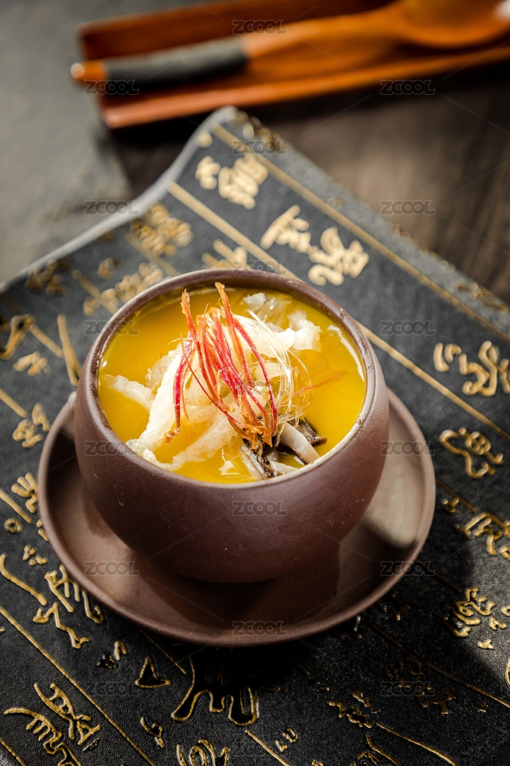 一盅,金黄,高汤,火腿丝,香菇,燕窝,羹煲,金黄色,滋补养生,燕窝羹