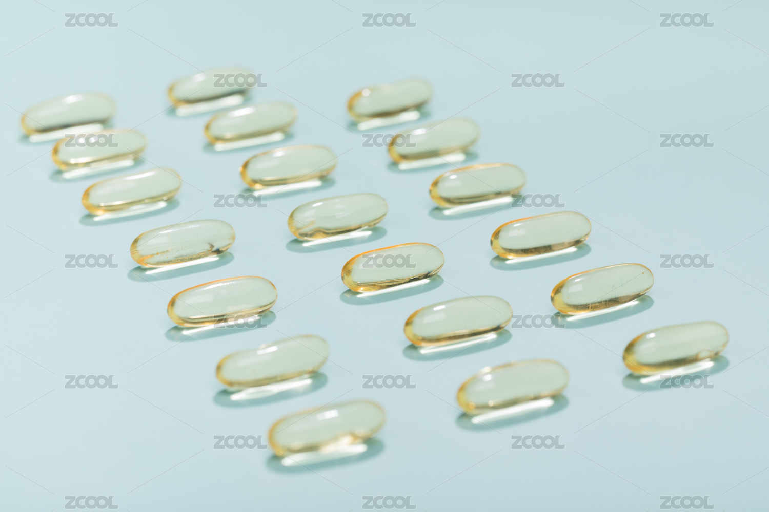 白色桌面上摆着黄色透明胶囊