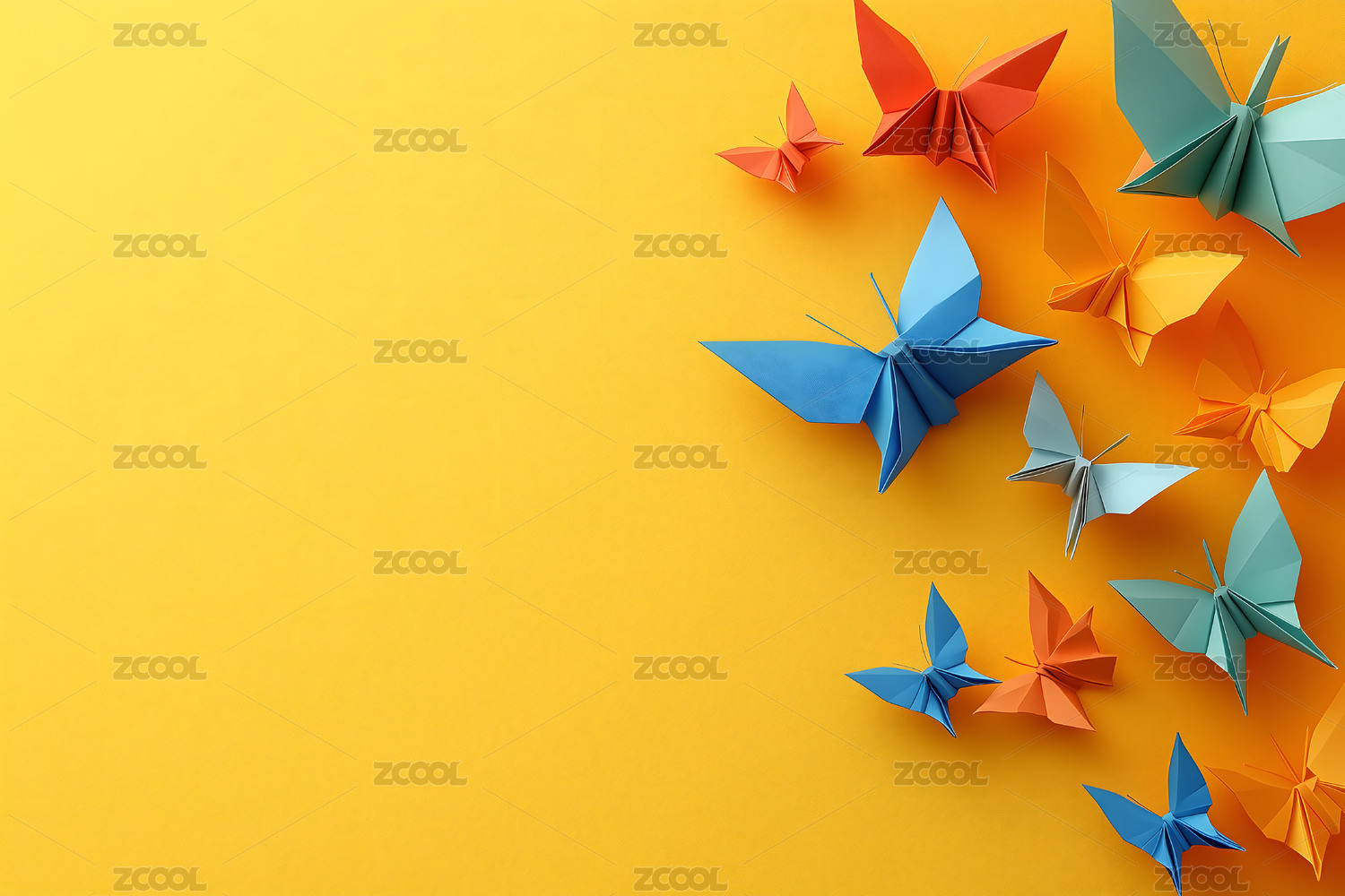 彩色卡纸堆叠在桌面上形成简约抽象的色块
