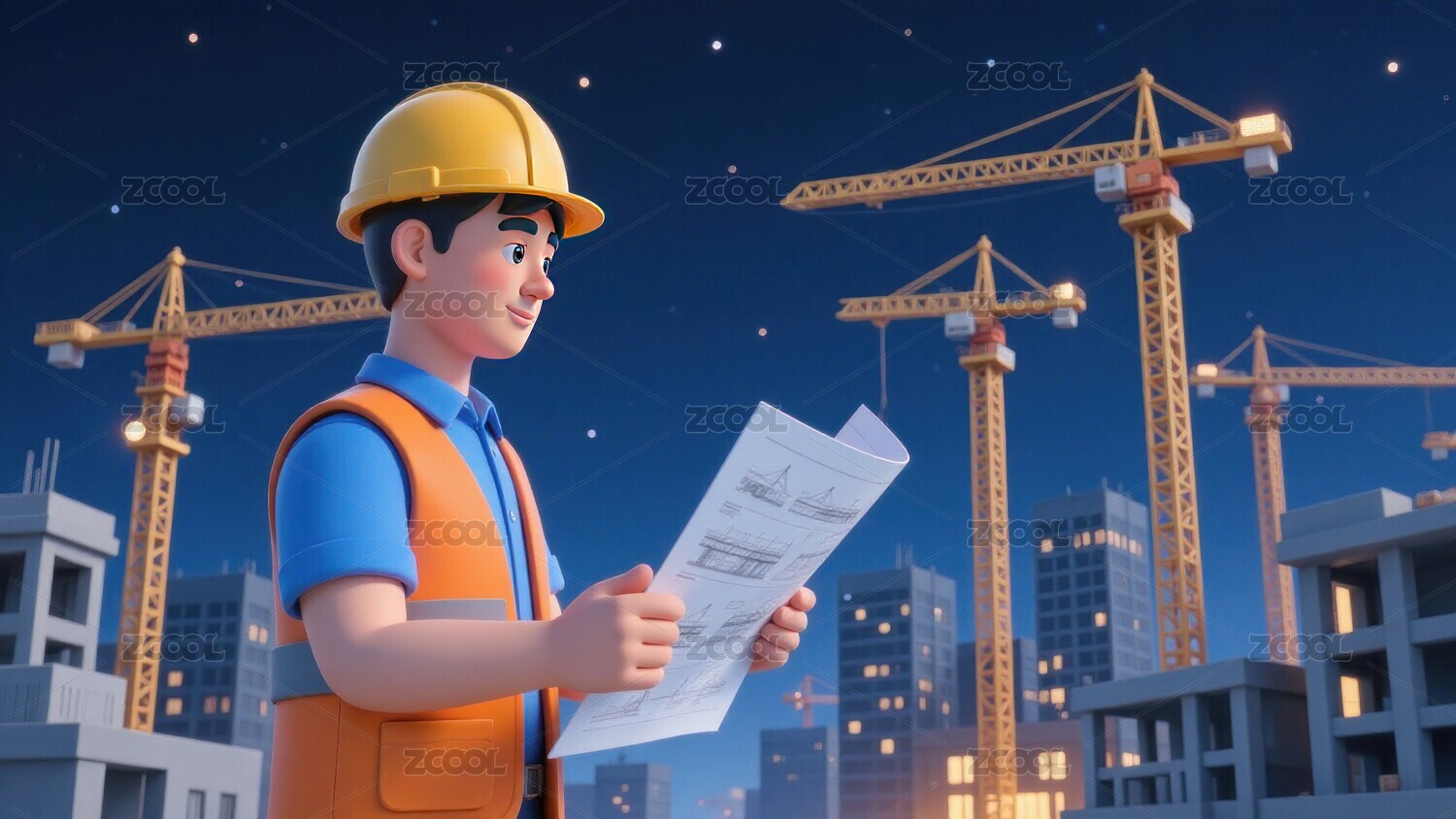 卡通工人在建筑工地