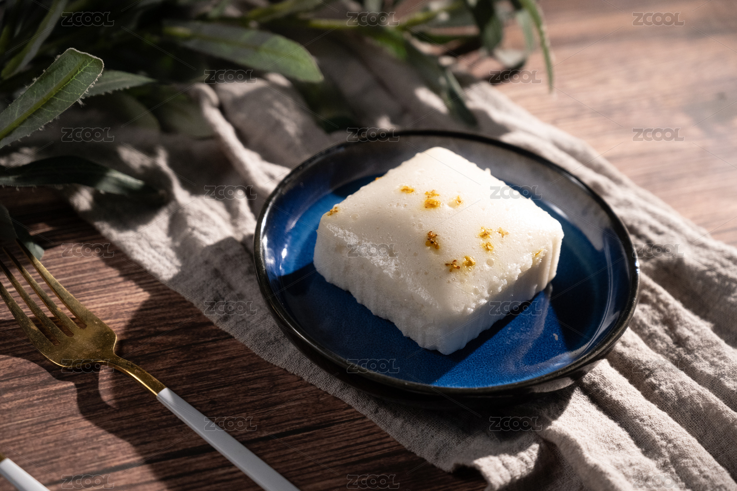 桌面上的盘子里的美味可口的桂花蒸糕