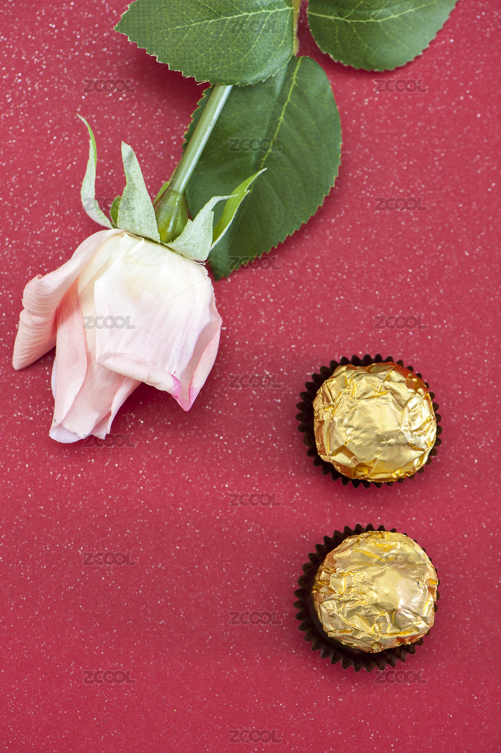 玫瑰花与心形的糖块