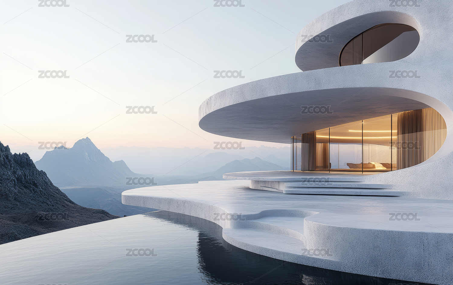 沙漠中的白色流线型艺术豪宅汽车广告背景