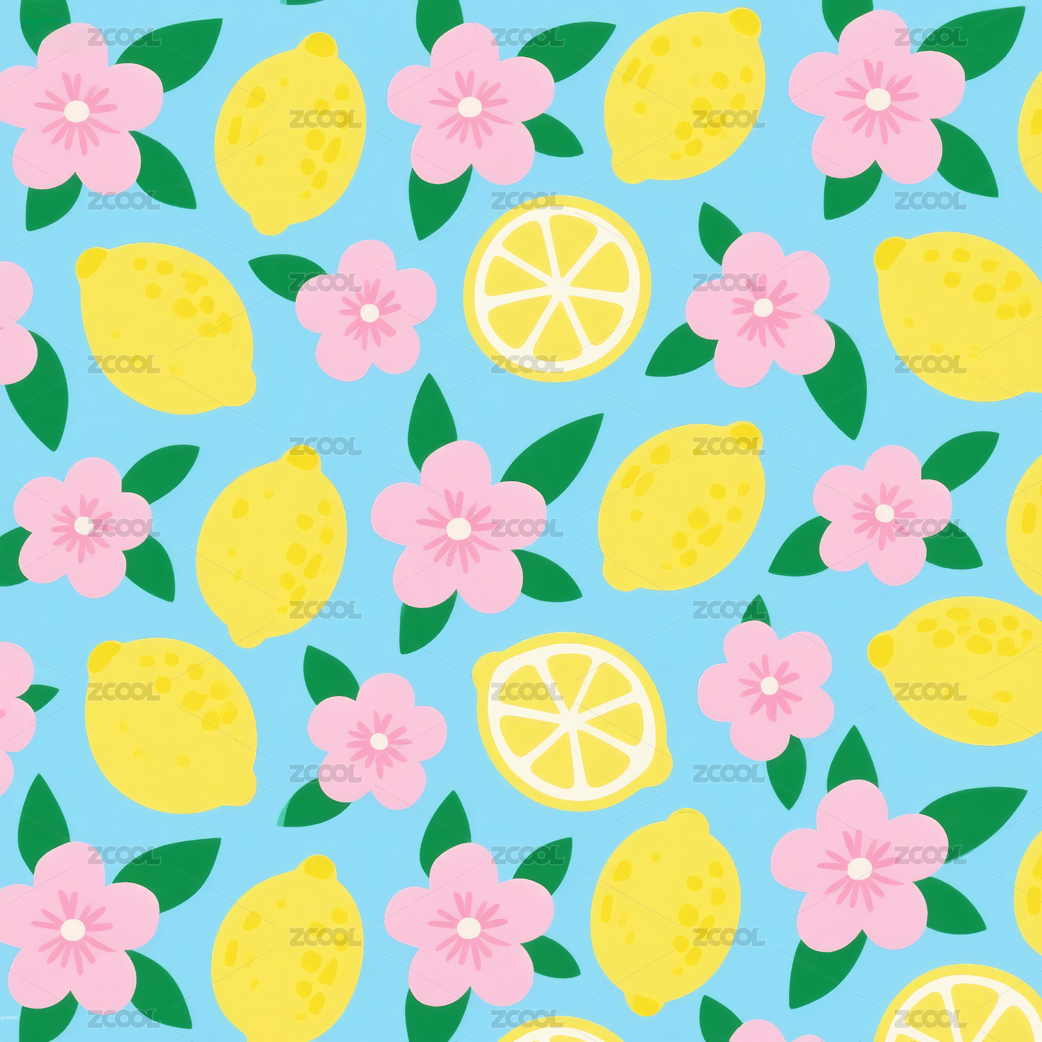 可爱卡通柠檬-无缝背景包装面料矢量图案