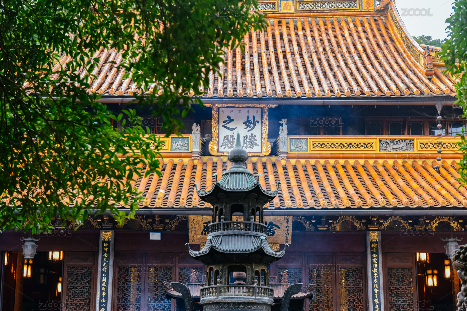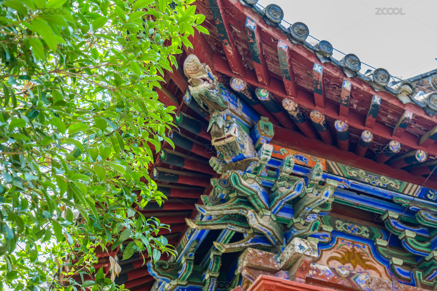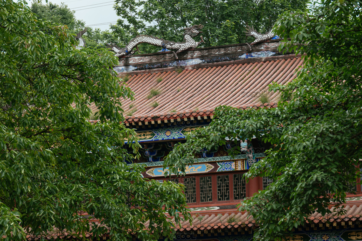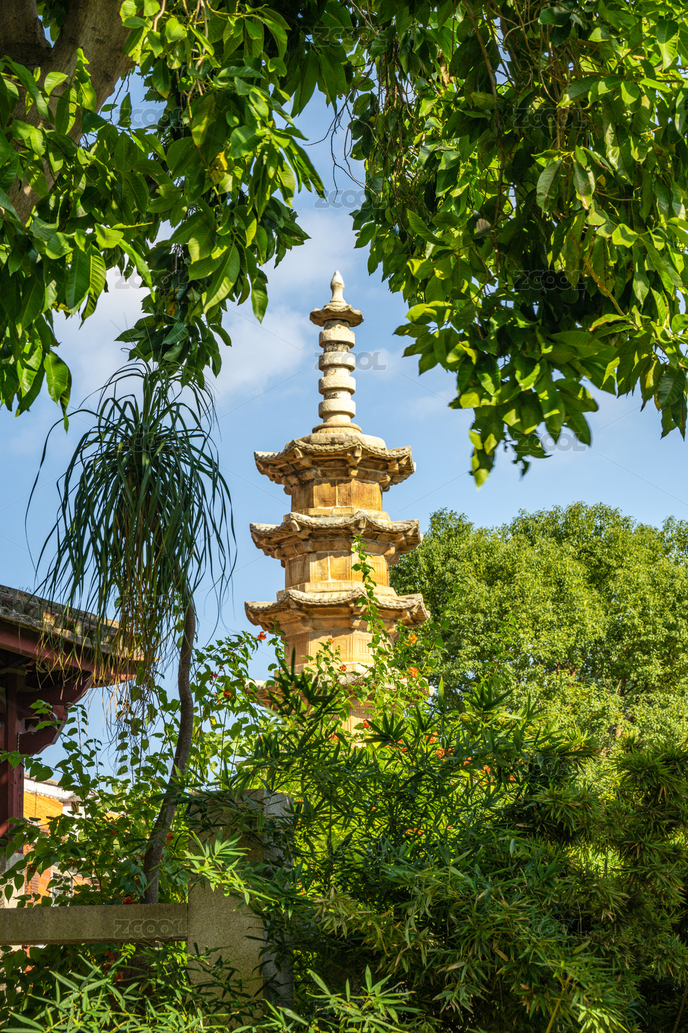 寺庙庭院中的屋顶