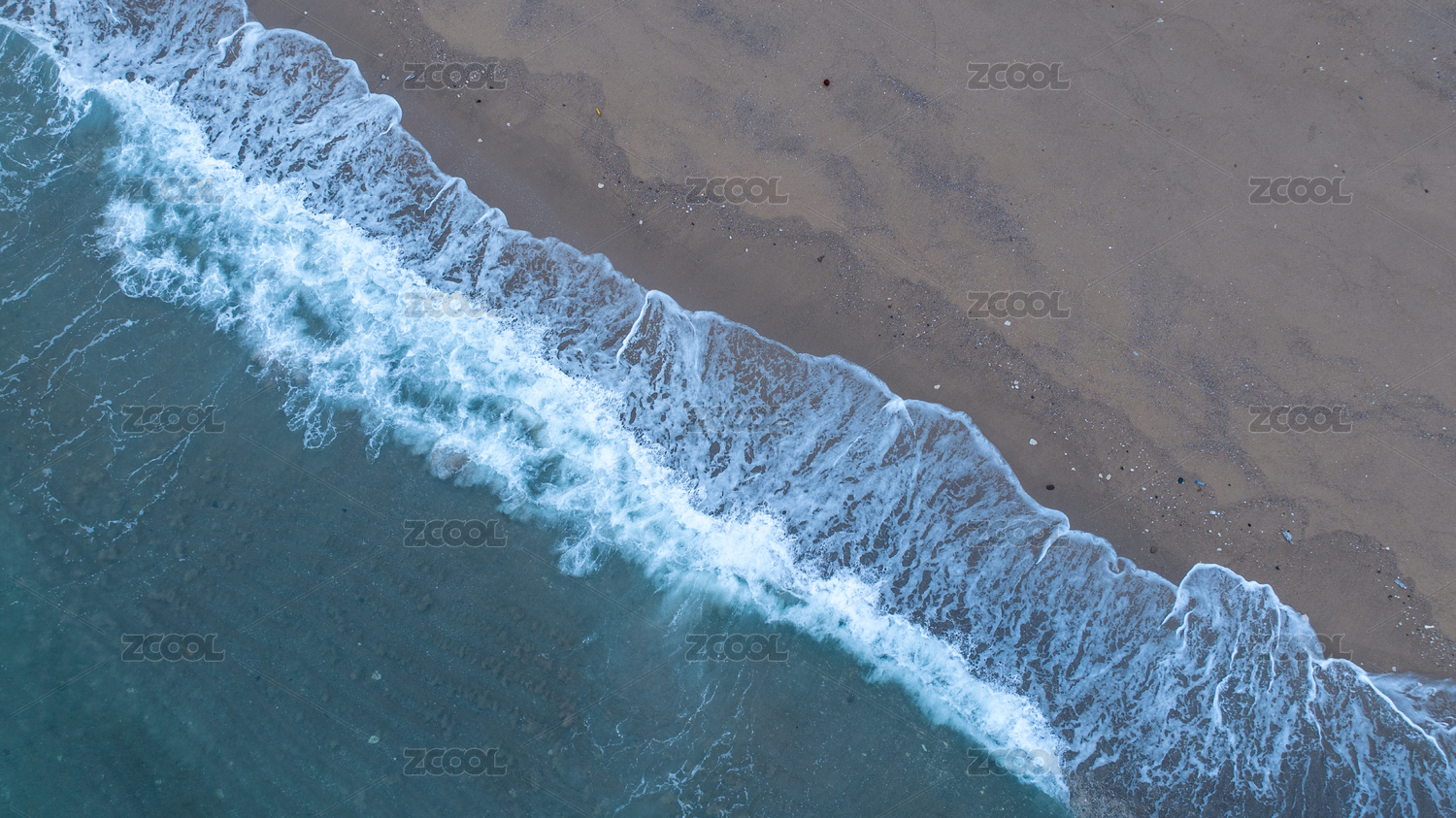 三亚海棠湾冲浪圣地的浪花拍打沙滩航拍风景