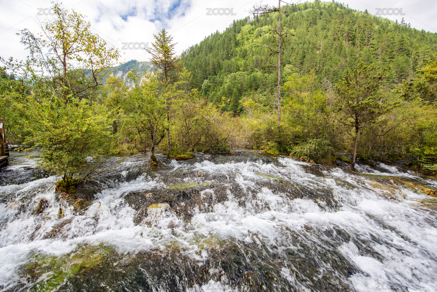 四川,九寨沟,溪流,树木,水流,动感,云杉,山坡,流水,晴朗