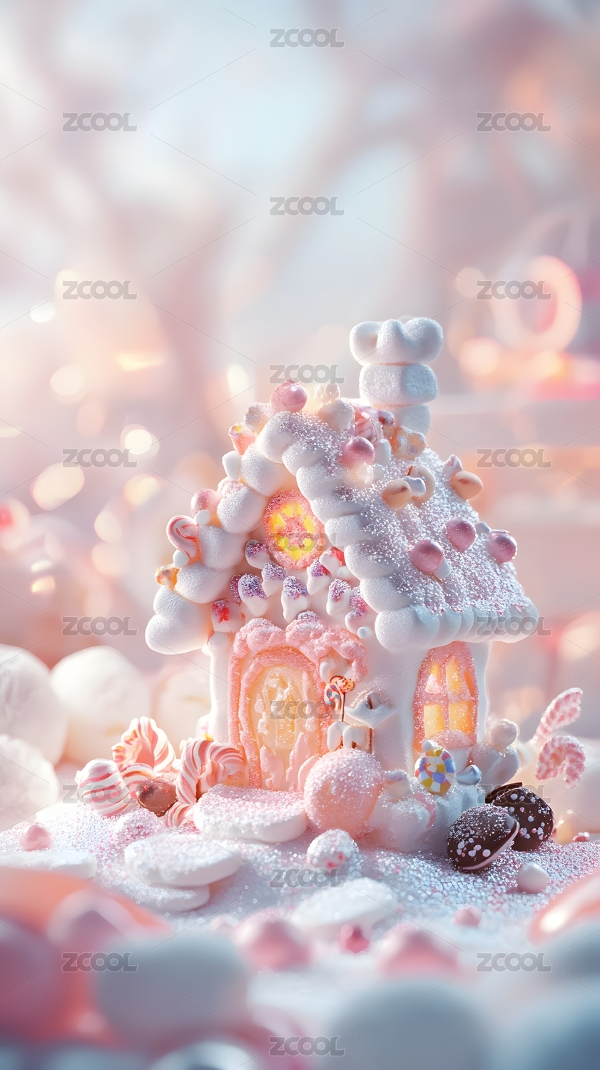三维, 立体, 3D, 姜饼屋, 棉花糖, 糖果, 节日, 圣诞节, 冬天, 甜点