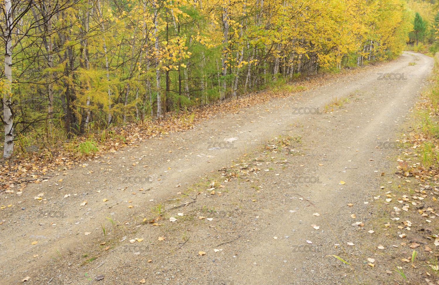 中国内蒙古兴安盟地区秋季森林和道路景观