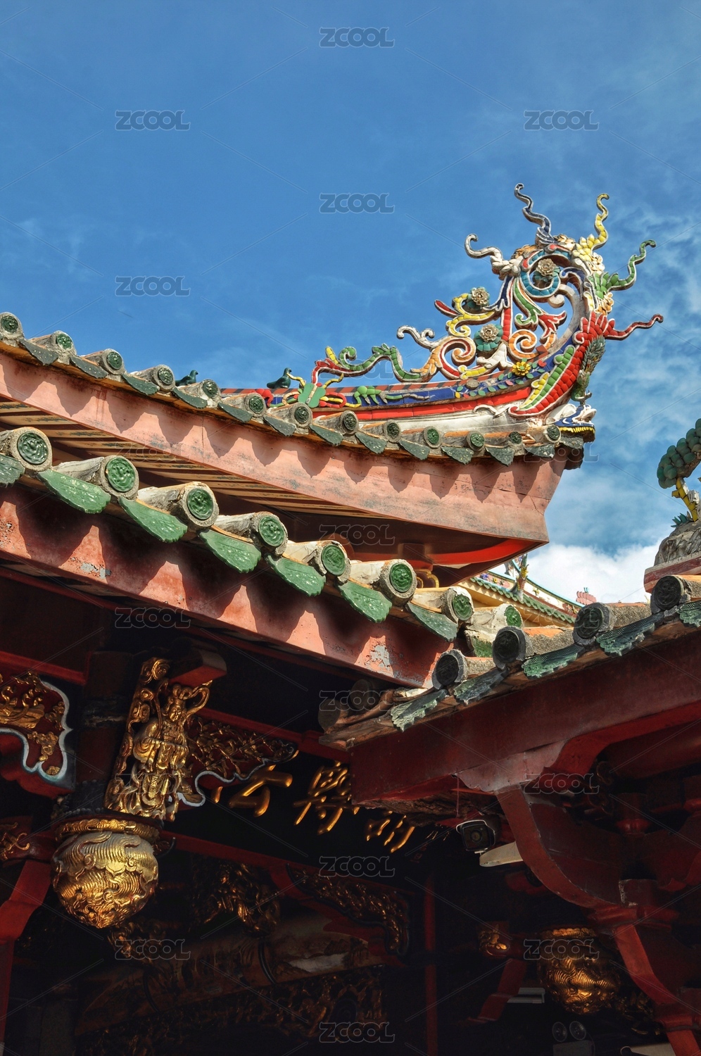 福建省泉州仙公山寺庙屋顶上的雕塑