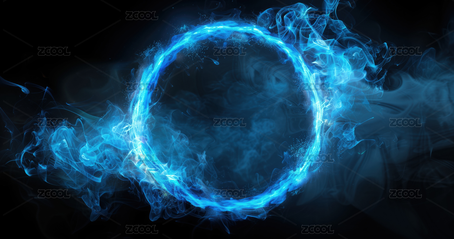 炽热火球与蓝色烟雾环绕的宇宙奇观