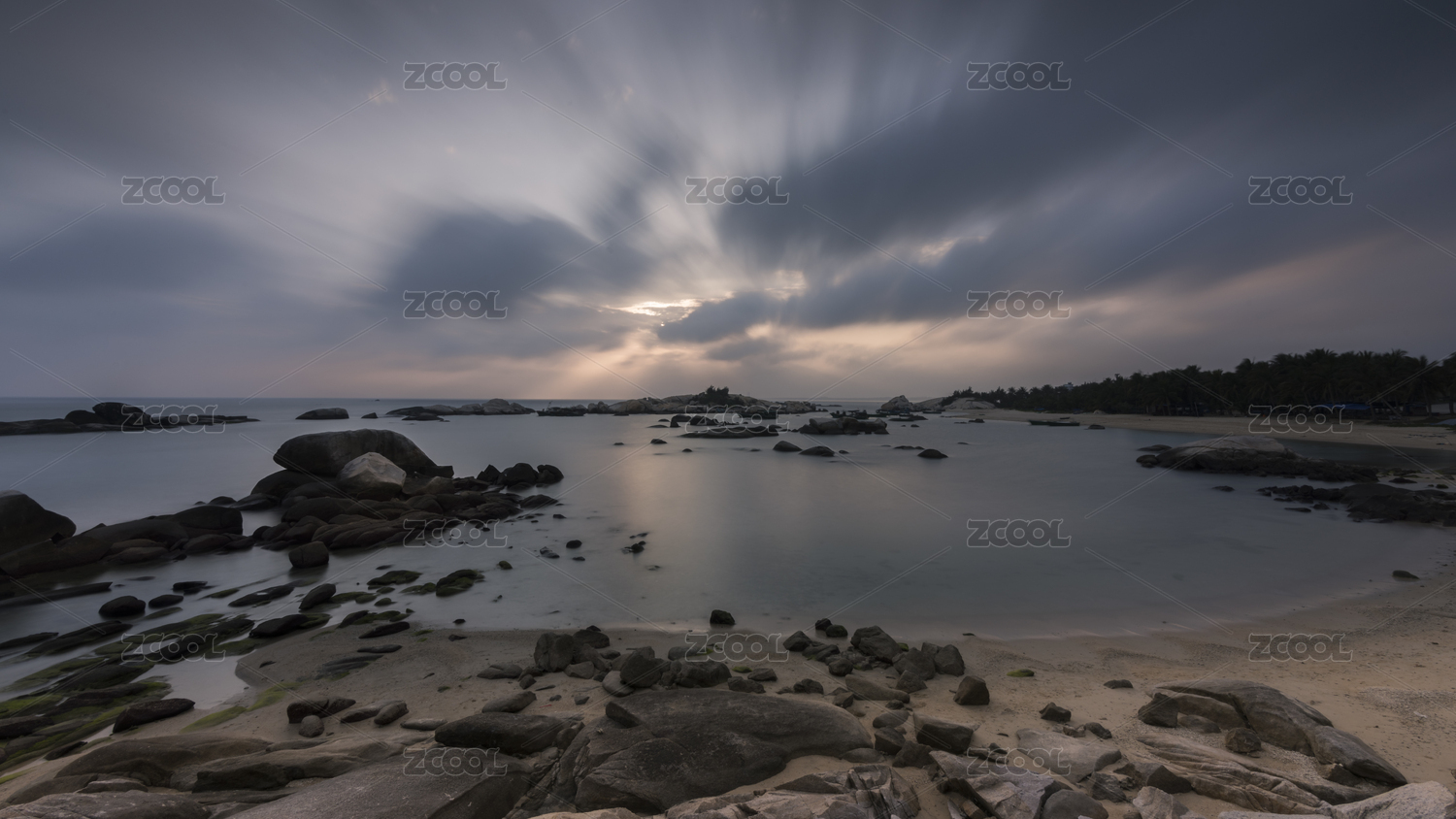 冬季的傍晚海南文昌石头公园海湾的晚霞