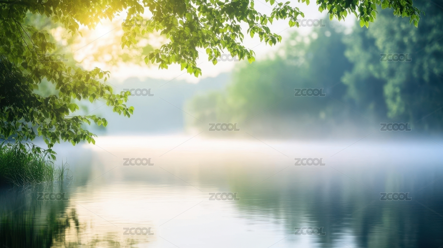 雾,户外,湖,树,地形,天空,水,黄昏,反射,日落