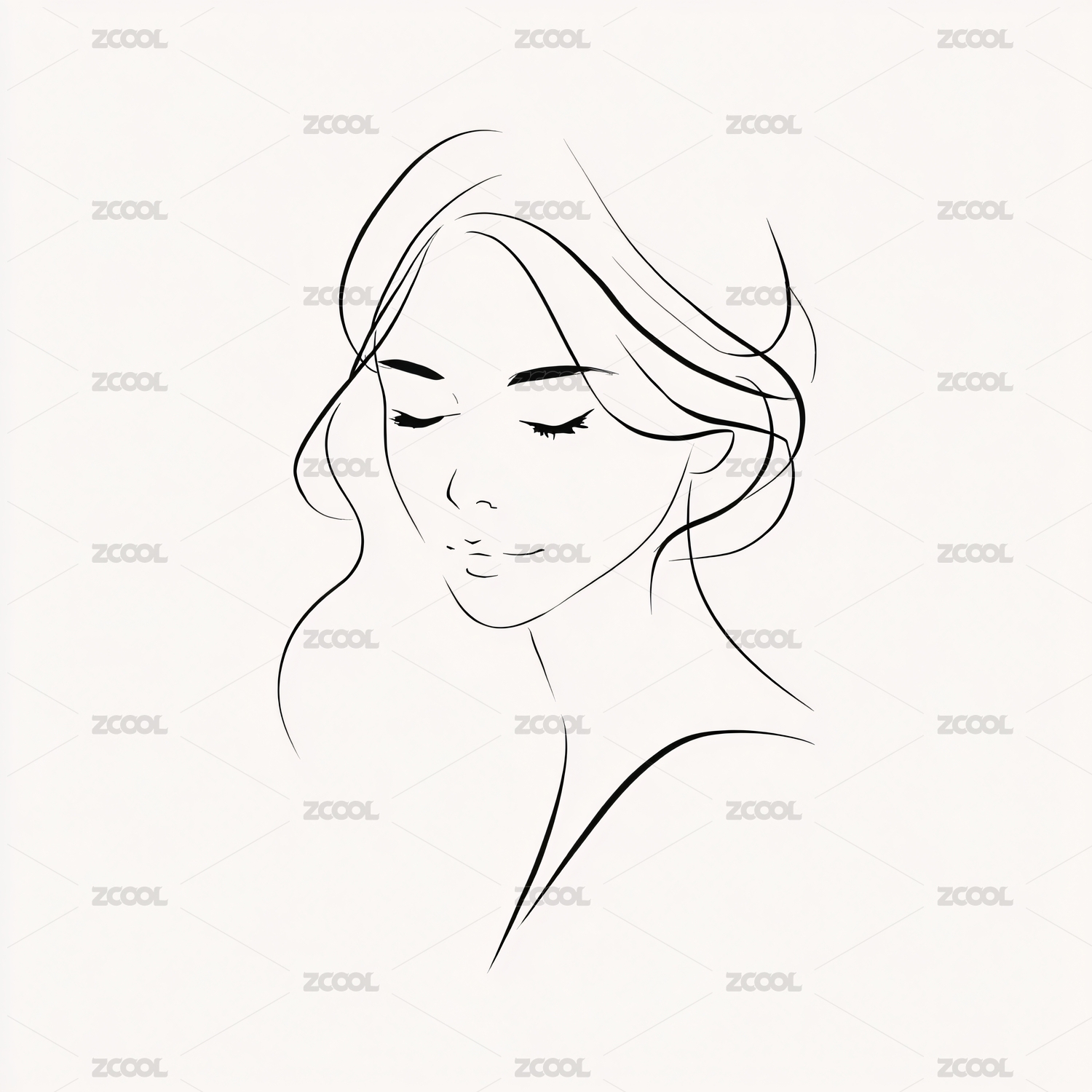 手绘的简约的线条艺术素描年轻时尚女性人物