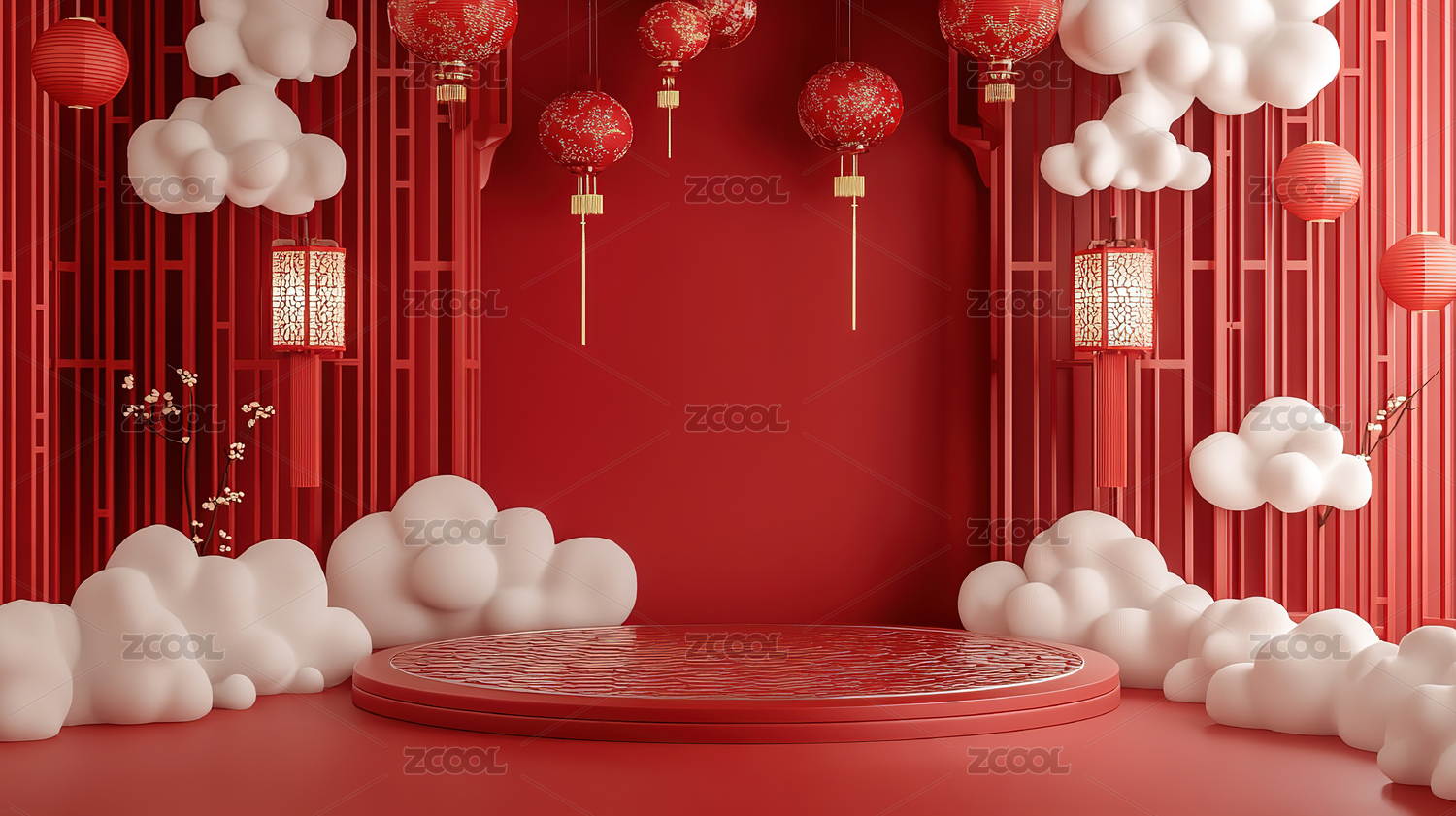 中式春节产品展示红色背景