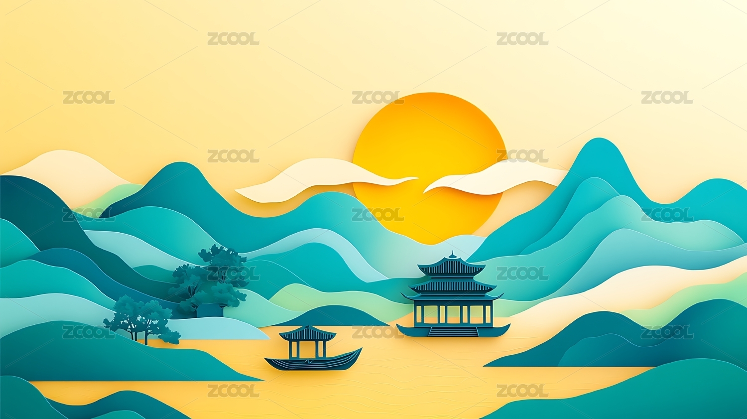 日出山水背景
