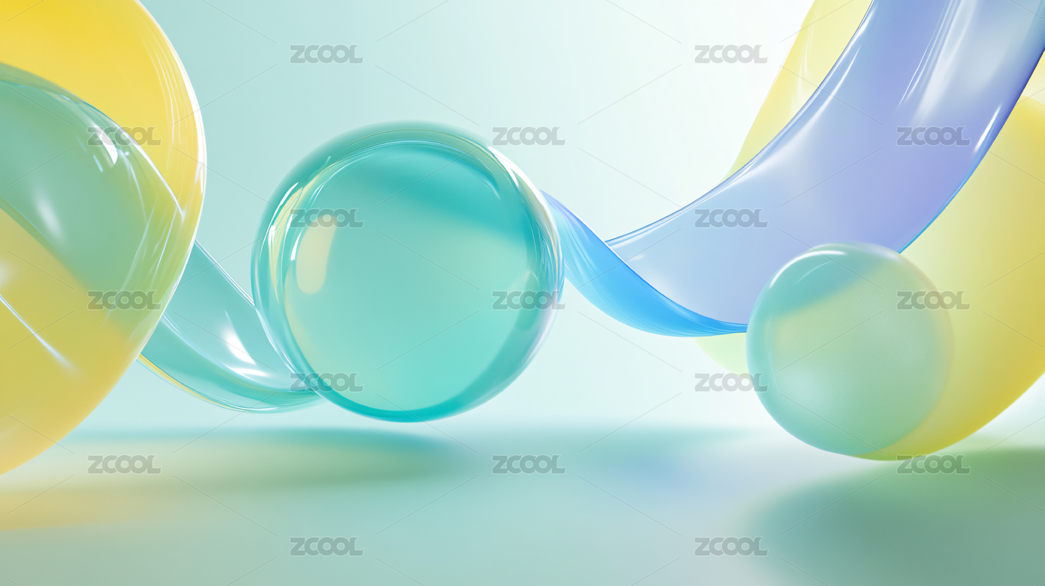 科幻感蓝色透明有机材料圆球气泡3D插画背