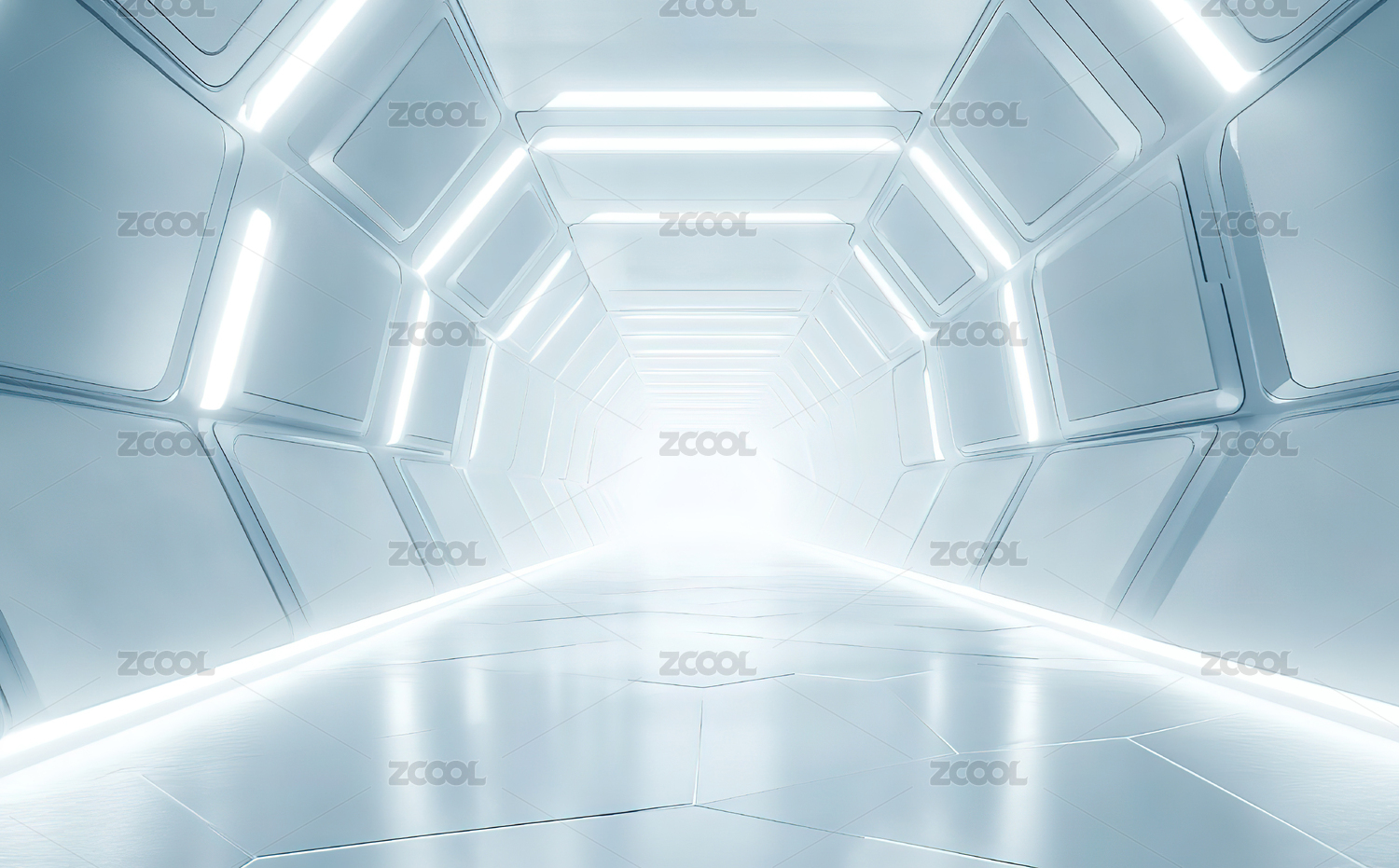 未来科技感白色走廊空间