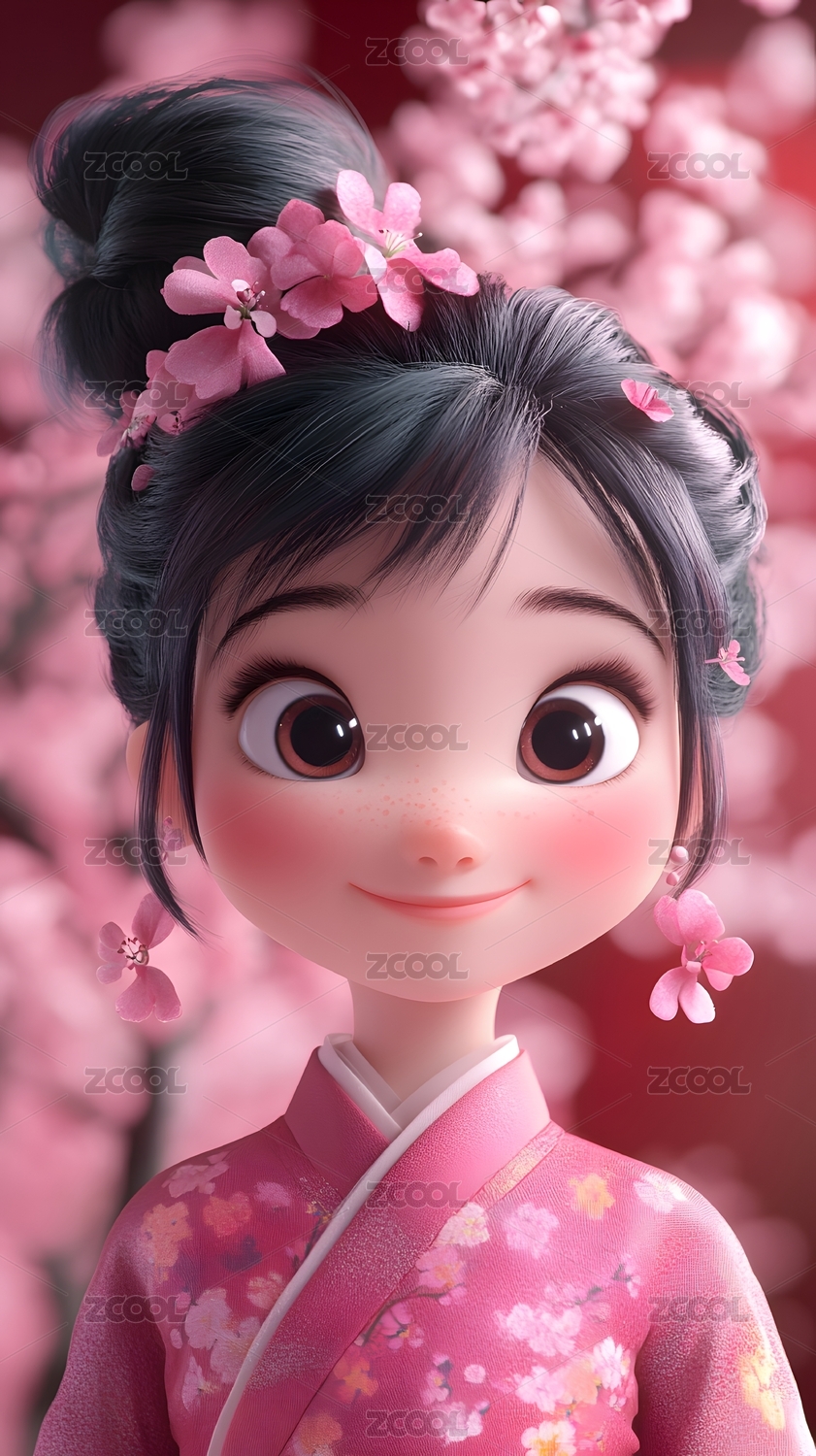 春节,新年,冬天,雪地,雪,雪花,卡通,可爱,女孩,3D