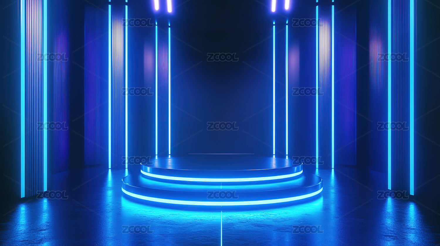 蓝色灯光下的舞台