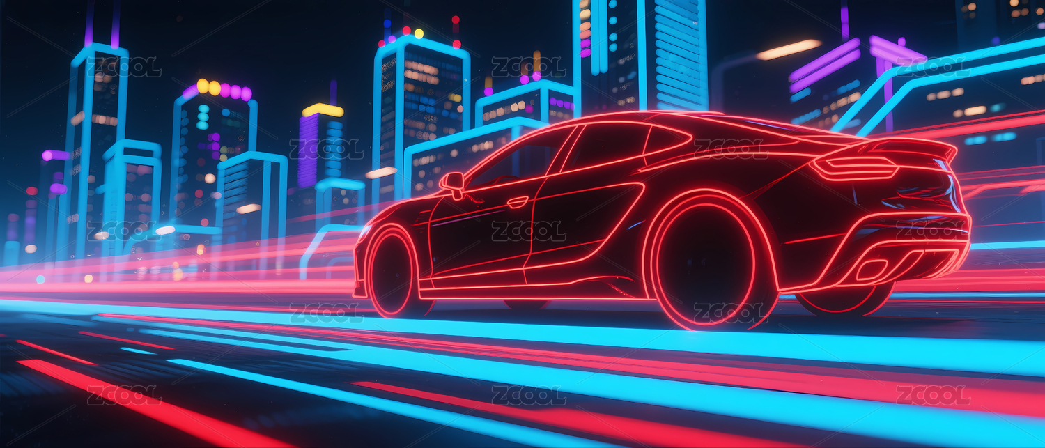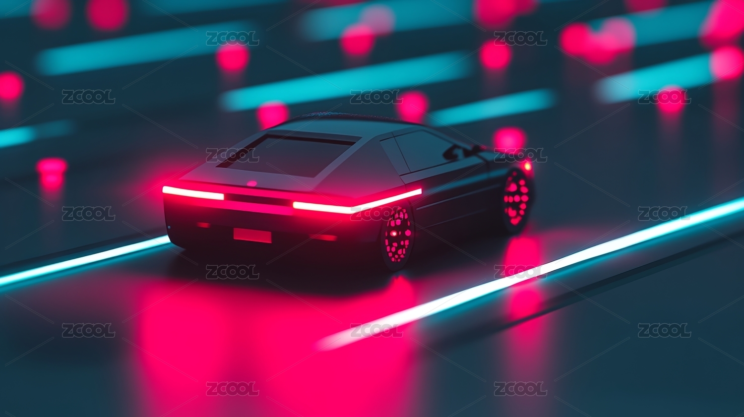 新能源汽车线条3d简洁智能驾驶科技感插画