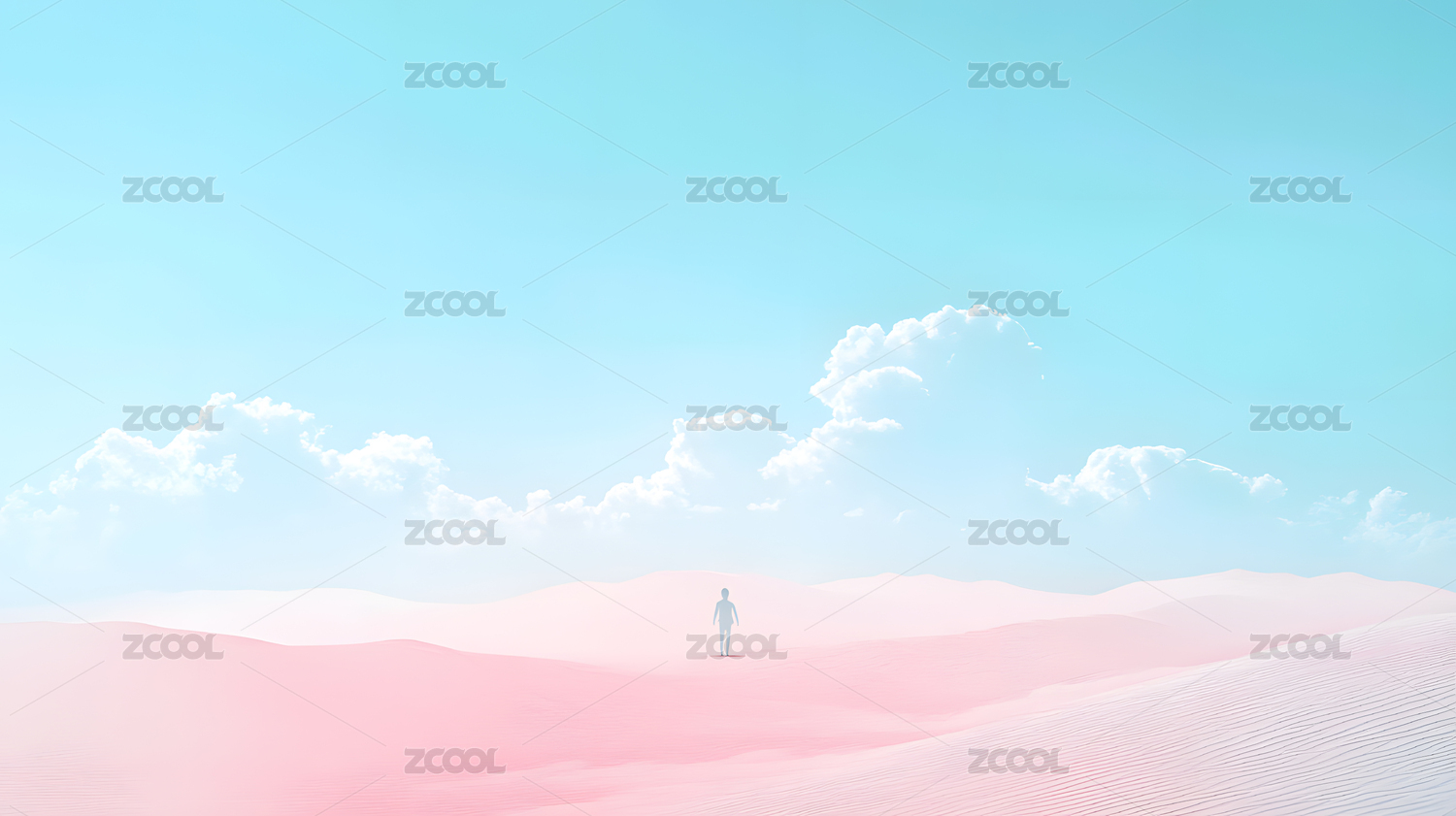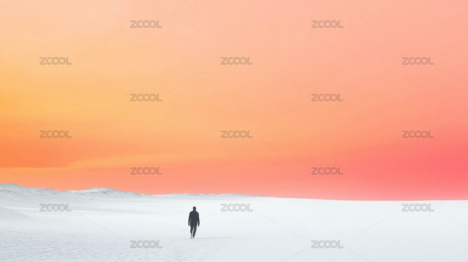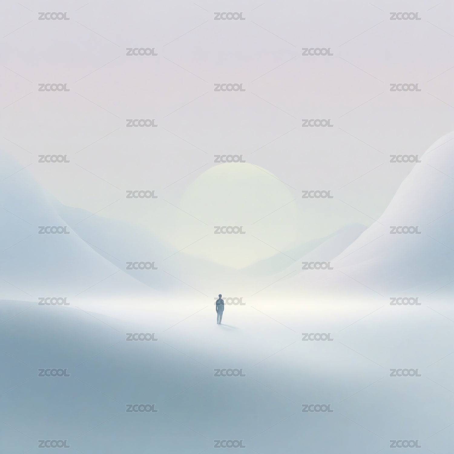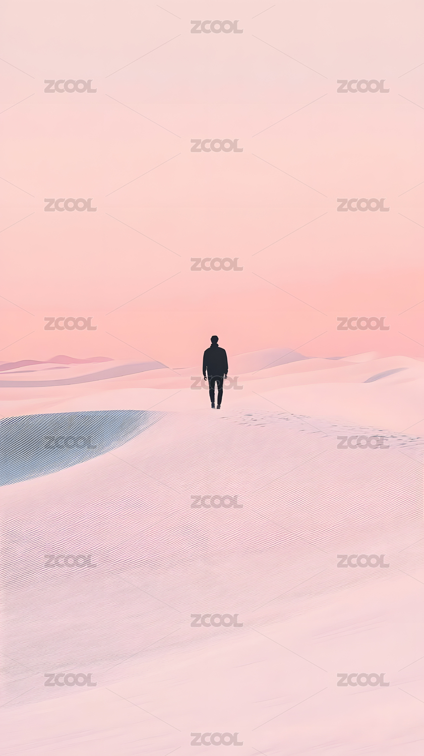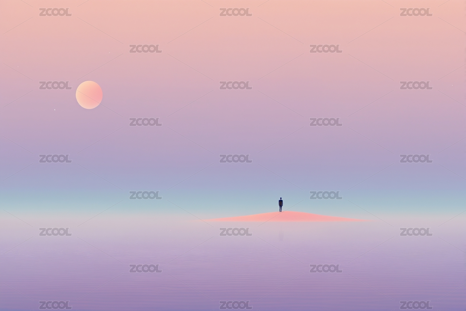 蓝紫色渐变天空 深蓝色旷野里孤独的人影