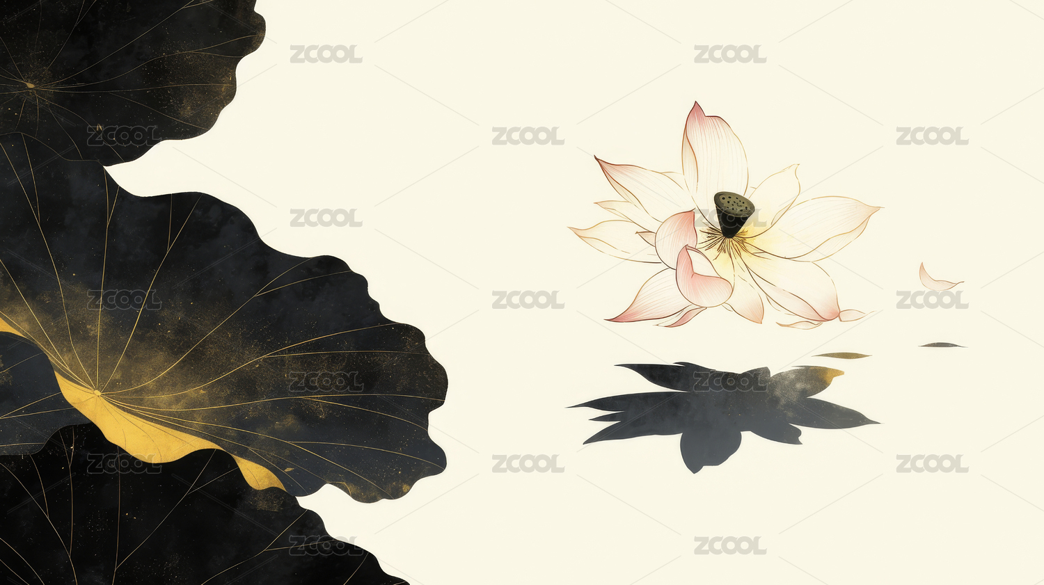 荷花植物国风插画背景