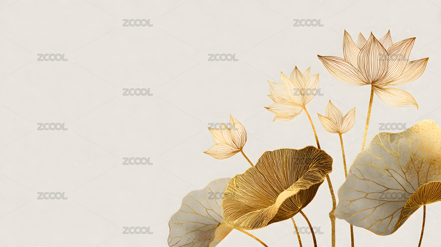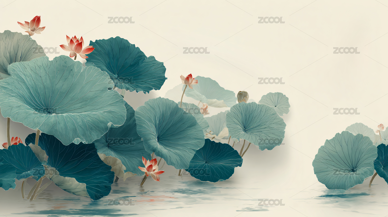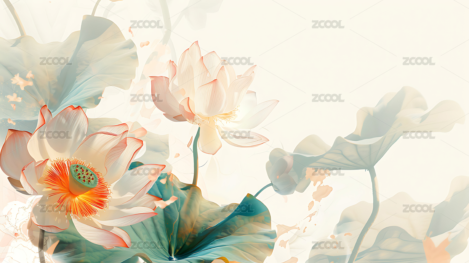 淡色背景的荷花荷叶图