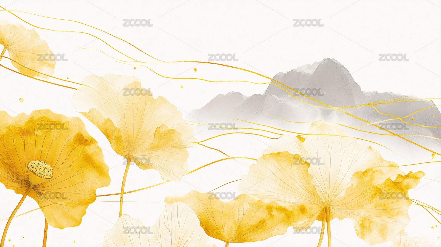 黄色古风大气荷花背景