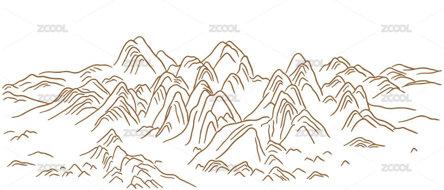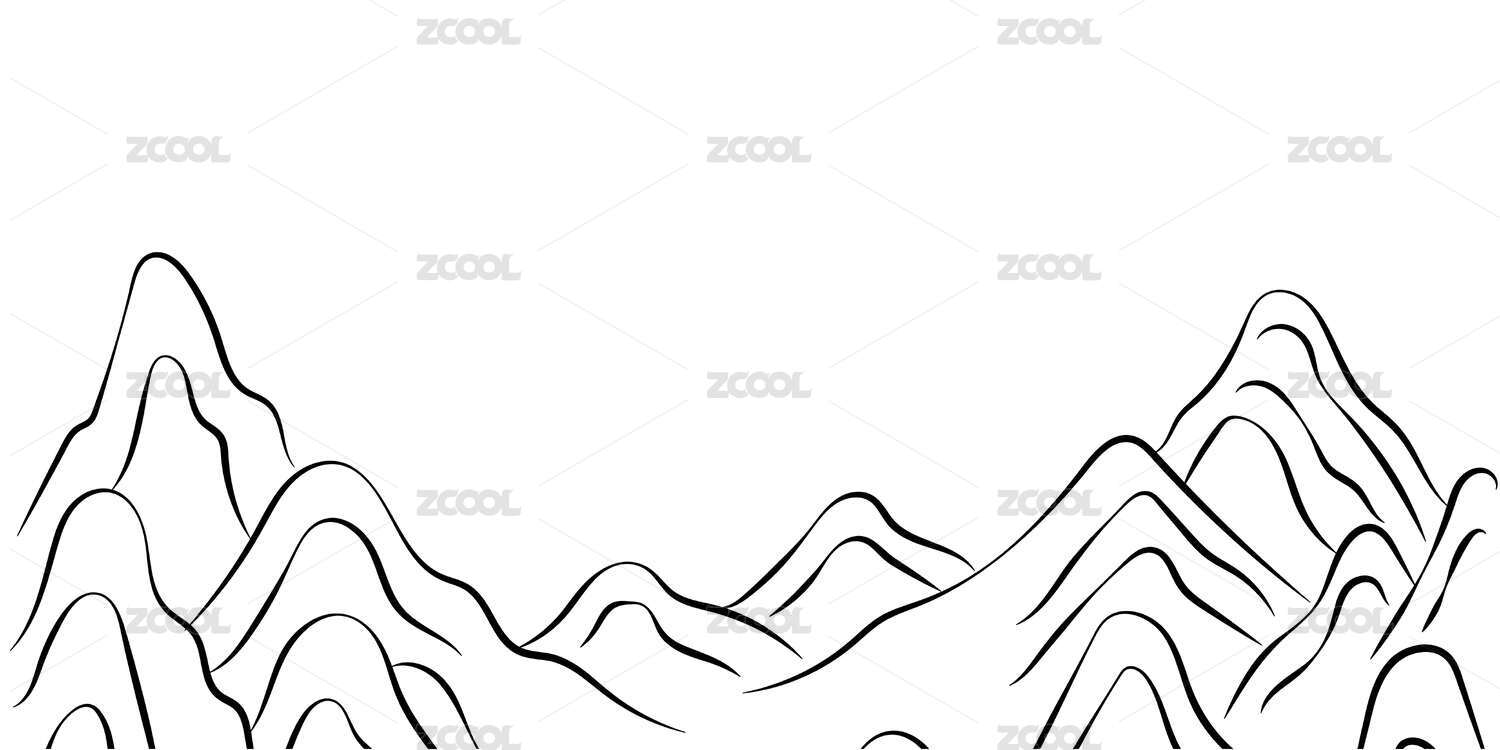 群山山水画国潮插画元素