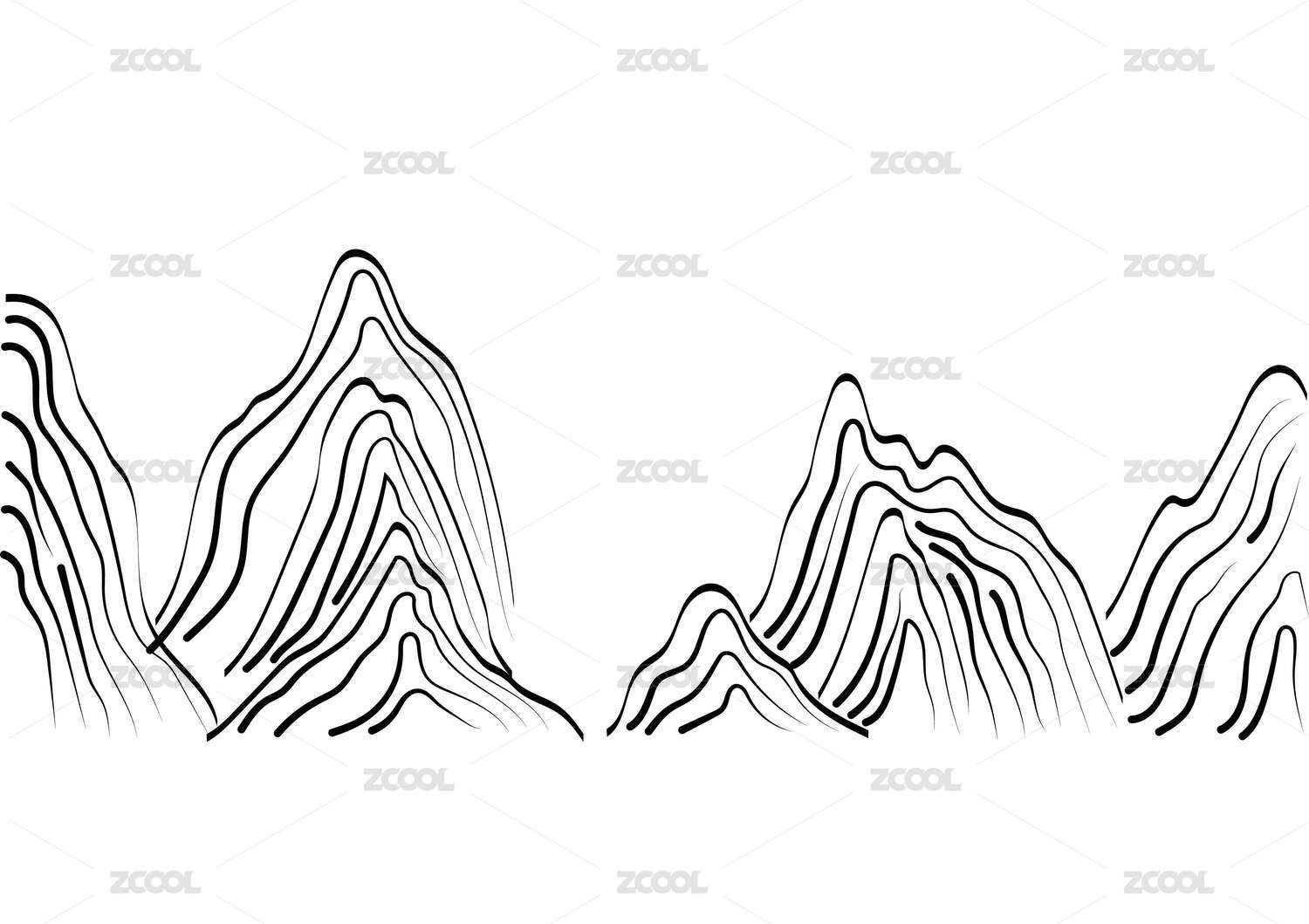 中国风线条山水画矢量插画