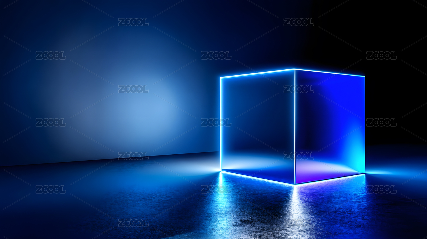 蓝色霓虹立方体光影空间