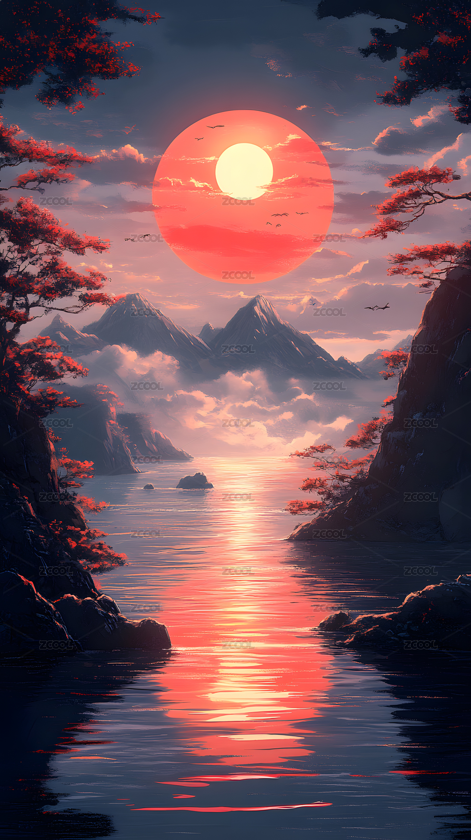 日落山海绝美风景图