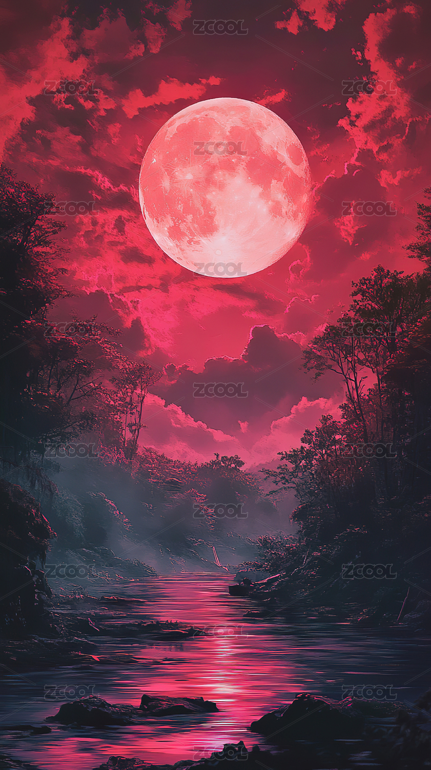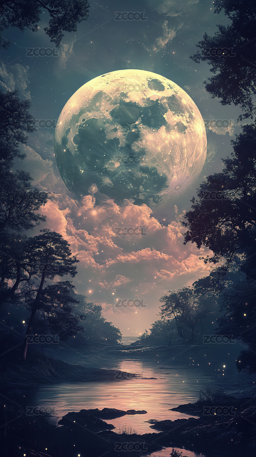 满月下的山河夜景