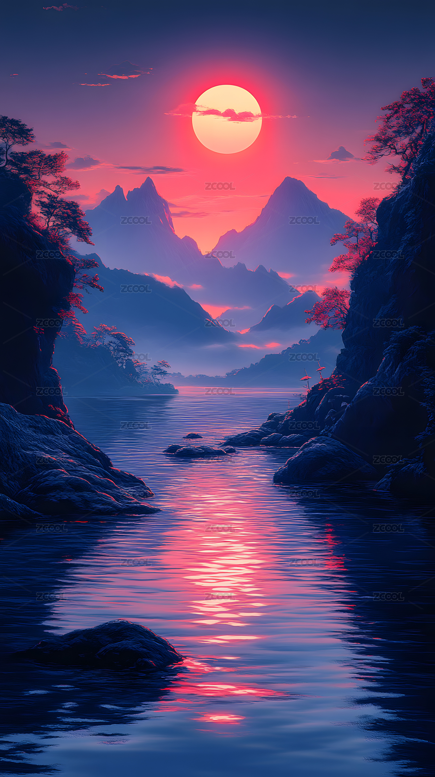 落日山河树影婆娑景色唯美