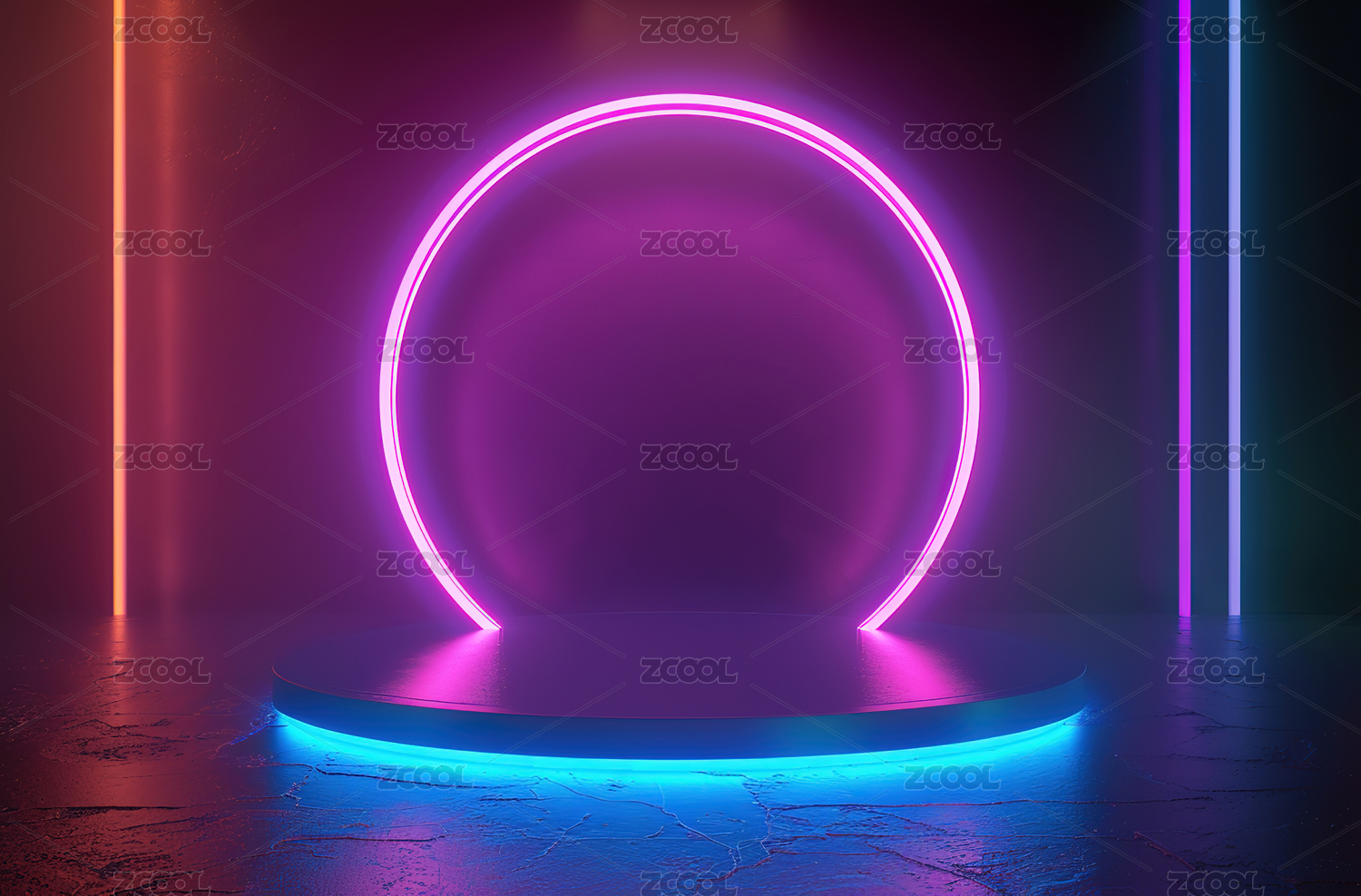 紫粉光效展示台场景图
