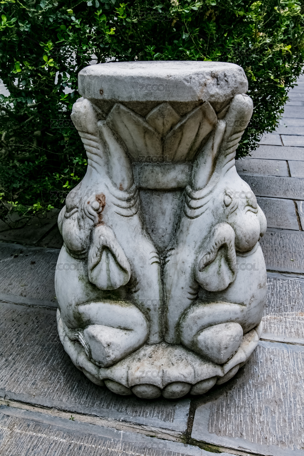 中国山西省太原文庙内的精美石刻石狮