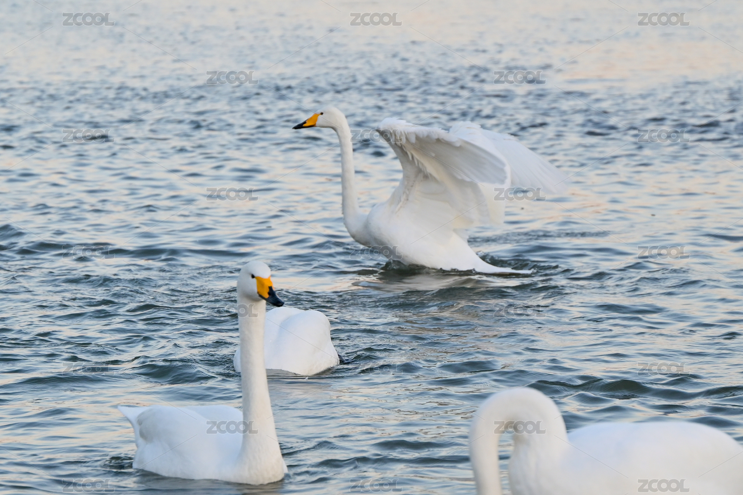 山东省荣成天鹅湖里越冬的西伯利亚大天鹅
