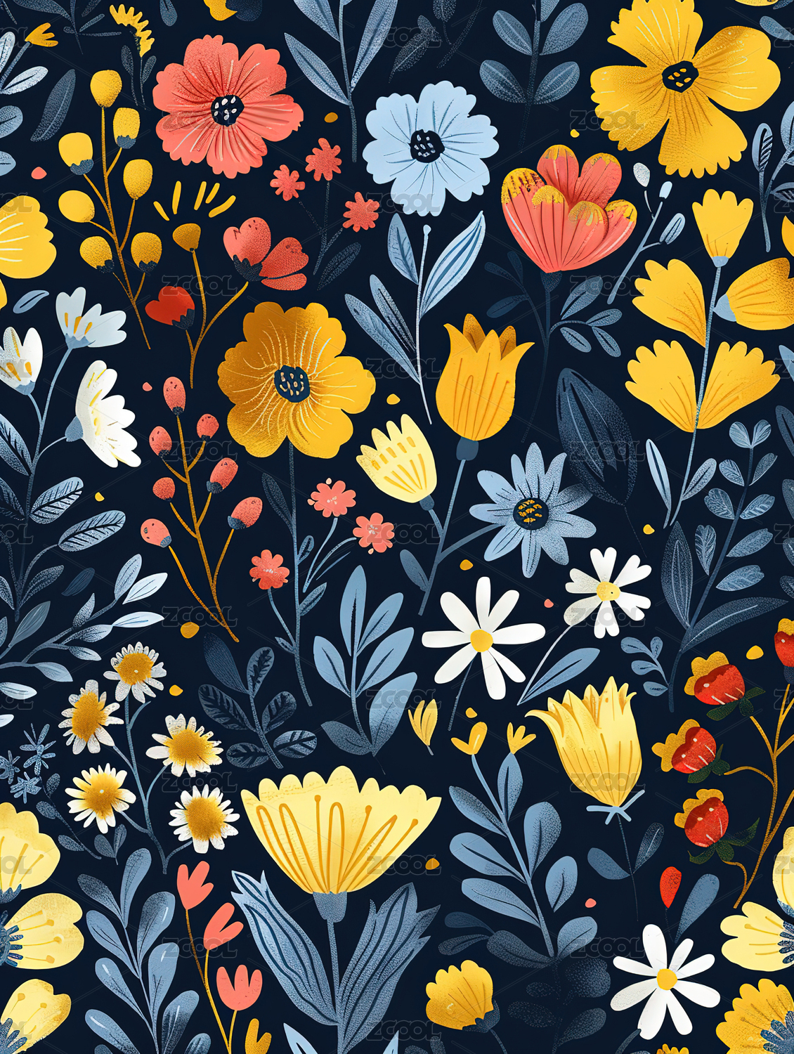 数码复古彩色梦幻花朵装饰抽象海报背景