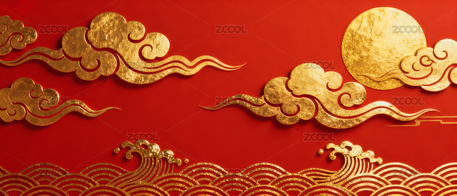 红色背景上的金色祥云